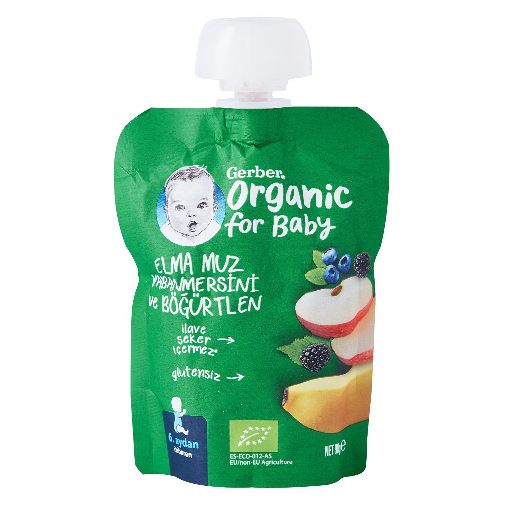 Gerber Organik Muzlu, Yabanmersinli, Böğürtlenli Elma Püresi 90 g, bebeklerin ihtiyaçlarına yönelik özel olarak formüle edilmiş, organik elma, muz, yabanmersini ve böğürtlen içeren doğal bir püredir. İçeriğinde katkı maddesi ve şeker bulunmaz, bu sayede bebeğinizin sağlığı için güvenli bir seçimdir.